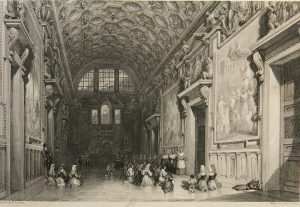E. CHALLIS (19.Jhd), Blick in die Sala Regia im Vatikanspalast in Rom, Sst.