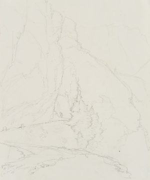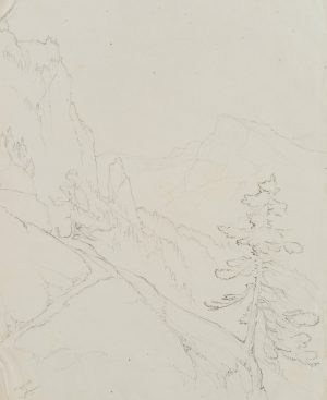 E. BRETENIÈRES (*1804), Pfad am Großen St. Bernhard, Schweiz, 1855, Bleistift