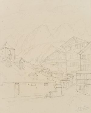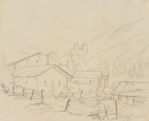 E. BRETENIÈRES (*1804), Rundkirche in Saas-Balen VS, Schweiz, 1856, Bleistift