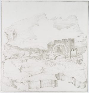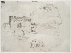 E. MAYER (*1932), Opt. Täuschung. Gesicht und Architektur, um 1985, Rad.