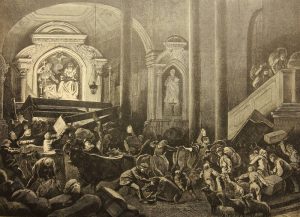 F. LINDNER (1847-1906), Rheinüberschwemmung, Flucht in die Kirche Edigheim,