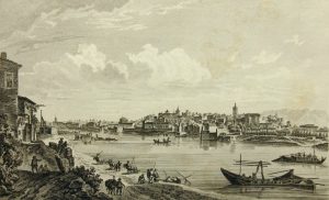 NÉE (*1739) nach LE MAY (*1734), Stadtansicht von Valence am Ufer der Rhône,