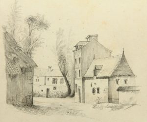 H. STEINBERG (19.Jhd), Straßenzug oder Hof in einer dörflichen Ortschaft,