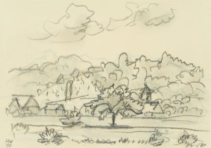 H. WINGLER (1896-1981), Rheinlandschaft, Wahrscheinlich bei Waldshut, 1958,