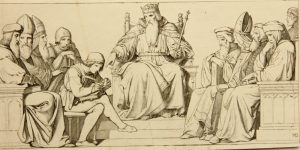 H. BÜRKNER (1818-1897), Kaiser Barbarossa mit Hofstaat, Radierung Romantik
