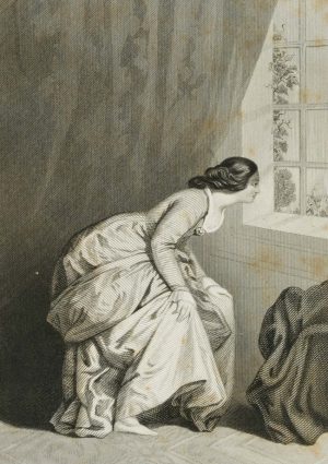 J. MOORE (19.Jhd), Damenporträt: Aline, Stahlstich Romantik Porträt