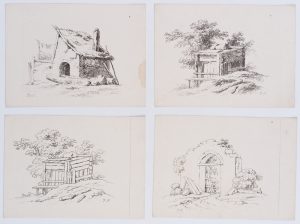 J. SCHINDLER (*1777), Zeichenschule, Rustikale Architektur und Natur, Realismus