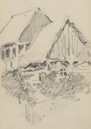 J. MOGK (1868-1921), Große Bauernhäuser, Skizze, Romantik Porträt