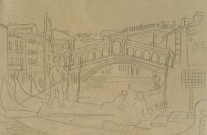 K. FRIEDRICH (20.Jhd), Rialtobrücke und Gondoliere in Venedig, Bleistift