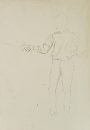 K. FRIEDRICH (20.Jhd), Bewegungsstudie eines Fechters, Bleistift Moderne