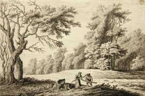 K. PONHEIMER (*1757), Bauer u Magd sammeln Totholz auf Waldlichtung, Rad.