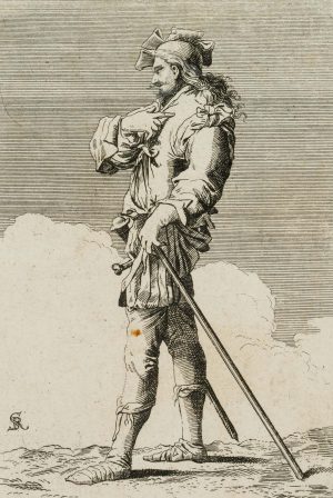 Nach ROSA (*1615), Stehender Krieger Stab, um 1657, Rad. Barock Militär