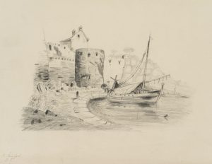 O. KIRCHEIS (*1862), Hafenbefestigung, Deutsche Akademieschülerin, um 1900, Blei