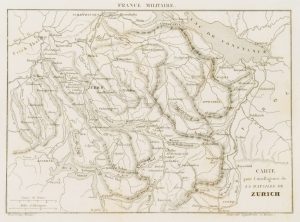 RAMBOZ (19.Jhd), Franz. Militärkarte der Schweiz, Radierung Romantik Militär