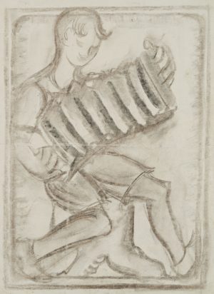 R. SCHMID (1896-1971), Junger Mann mit Akkordeon, um 1960, Figürlich Porträt