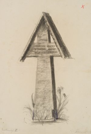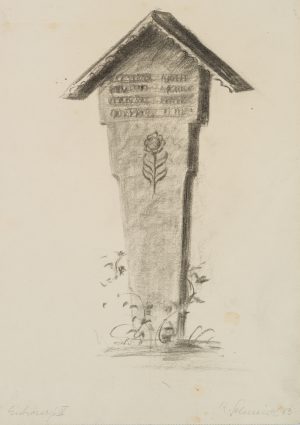 R. SCHMID (1896-1971), Grabmal aus Holz, Entwurf I, 1953, Bleistift Gegenständl