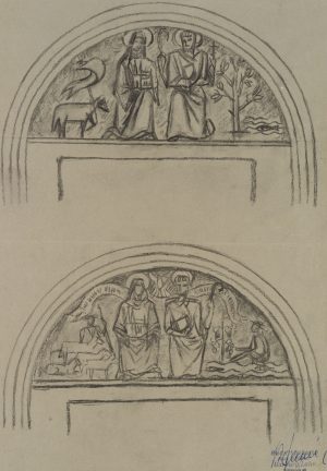 R. SCHMID (1896-1971), Portale mit reichem figürlichen Dekor, um 1950, Figürlic