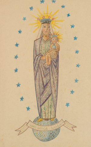 R. SCHMID (1896-1971), Muttergottes auf der Weltenkugel mit Jesuskind, um 1950,