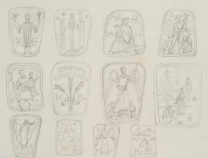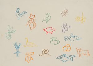 R. SCHMID (1896-1971), Studienblatt: Kindliche Piktogramme, um 1960, Gegenständ