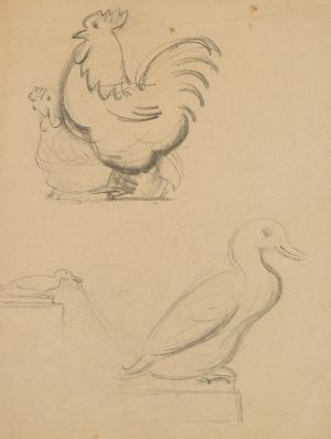 R. SCHMID (1896-1971), Studienblatt: Hahn und Ente, um 1960, Bleistift Gegenstän