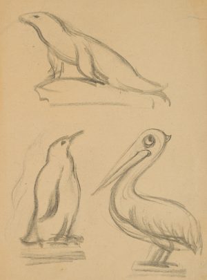 R. SCHMID (1896-1971), Studienblatt: Robbe, Pinguin und Pelikan, um 1960, Bleist