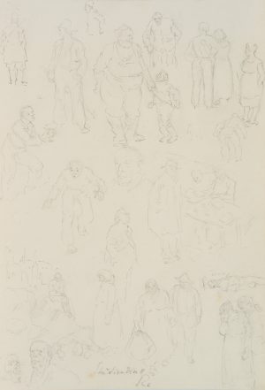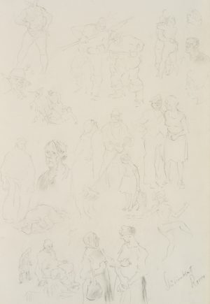 R. SCHMID (1896-1971), Studienblatt Rom, Straßenszenen mit Figuren, um 1960, Ble