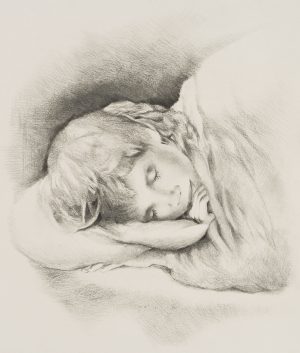 R. SCHMID (1896-1971), Schlafendes Mädchen, Illustration und Text, um 1960, Rad.