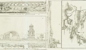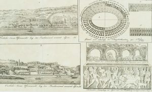 S. WOLF (19.Jhd), Röm. Architektur mit Landschaftskarte, Romantik Landschaft
