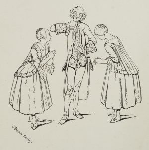 T. SCHULER (1821-1871), Rokoko-Karikatur mit Edelmann, Rokoko Karikatur