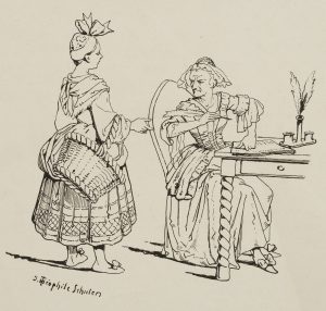 T. SCHULER (1821-1871), Rokoko-Karikatur mit Bediensteter, Rokoko Karikatur