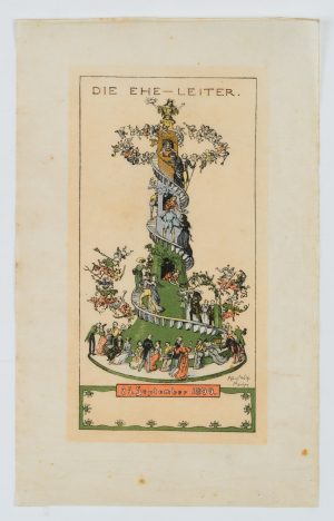 Unbekannt (), WELTI, Die Ehe-Leiter. 25. September 1899. Tischkarte, Holzschnitt