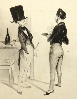 Unbekannt (19.Jhd), “Der verwechselte Hut”, Karikatur, Romantik Karikatur