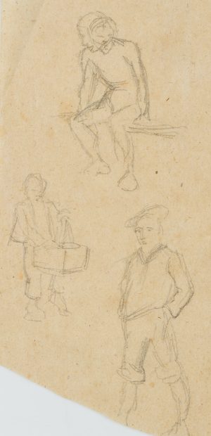 Unbekannt (19.Jhd), 3 variierende Figurenskizzen, Bleistift Realismus Porträt
