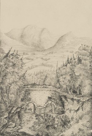 Unbekannt (19.Jhd), Alte Steinbrücke bei Weilburg, um 1834, Bleistift Romantik