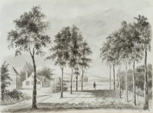 Unbekannt (19.Jhd), Wanderer auf Allee im Rheinland, Romantik Landschaft