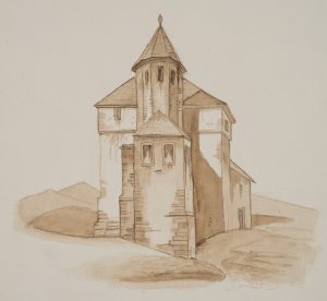 Unbekannt (19.Jhd), Architekturstudie eines Gutshofes, Seite, um 1872, Romantik