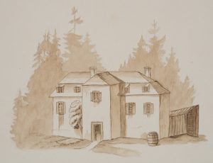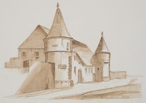 Unbekannt (19.Jhd), Architekturstudie eines Gutshofes, Front, um 1872, Romantik