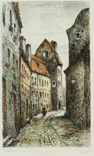 Unbekannt (20.Jhd), Blick in die Sperlingsgasse, Rad. Realismus Architektur