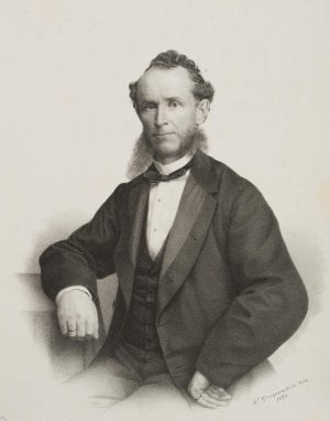 F. GRAUPENSTEIN (*1828), Porträt eines Herren im Mantel am Tisch sitzend, um 186