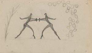 B. BURGER (1892-1968), Skizzen eines fechtenden Jungen, Bleistift Jugendstil