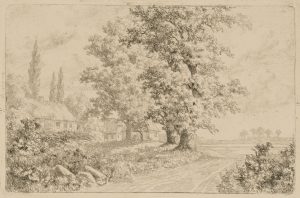 A. SCHOVELIN (*1827), Alte Eichen am Skaridsö, Radierung Realismus Landschaft
