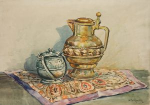 A. SCHMIDT (20.Jhd), Silberne Kanne mit Zuckertöpfchen, Realismus Stillleben