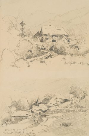 A. THAMM (1859-1925), Dörfer am Gotthardpass, 1899, Bleistift Realismus