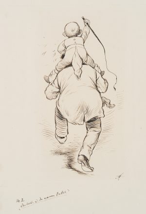 B. BURGER (1892-1968), Großvater spielend mit kleiner Enkeltochter, Bleistift