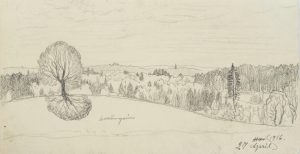 Unbekannt (20.Jhd), Landschaftsstudie mit Hängen und Wäldern, 1914, Bleistift