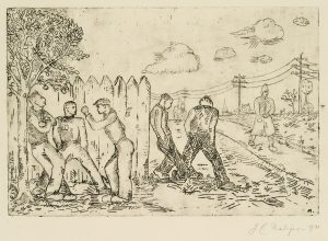Unbekannt (20.Jhd), Streunende Arbeiter, um 1933, Rad. Realismus Berufsleben