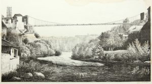 F. KOCHER (*1904), Hängebrücke bei Freiburg, Schweiz, Realismus Architektur