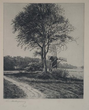 H. CASPERSEN (*1866), Dänische Landschaft mit Windmühle, 1917, Radierung