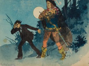 H. PRÖHLE (1822-1895), Surreale Märchenszene mit edlem Krieger, um 1885,