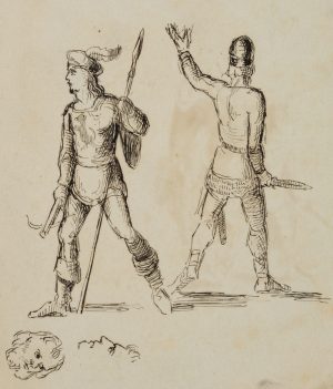 E. RONDAHL (1858-1914), Nordische Krieger mit Armbrust, um 1875, Federzeichnung
